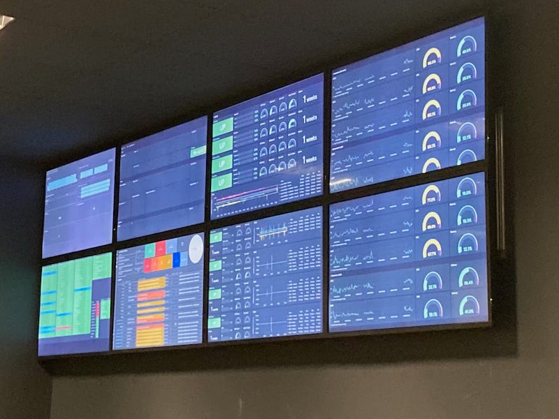 wmctrlallows me to bypass the Window Manager’s default placement and force specific dashboards to specific monitors in the 8-screen array.